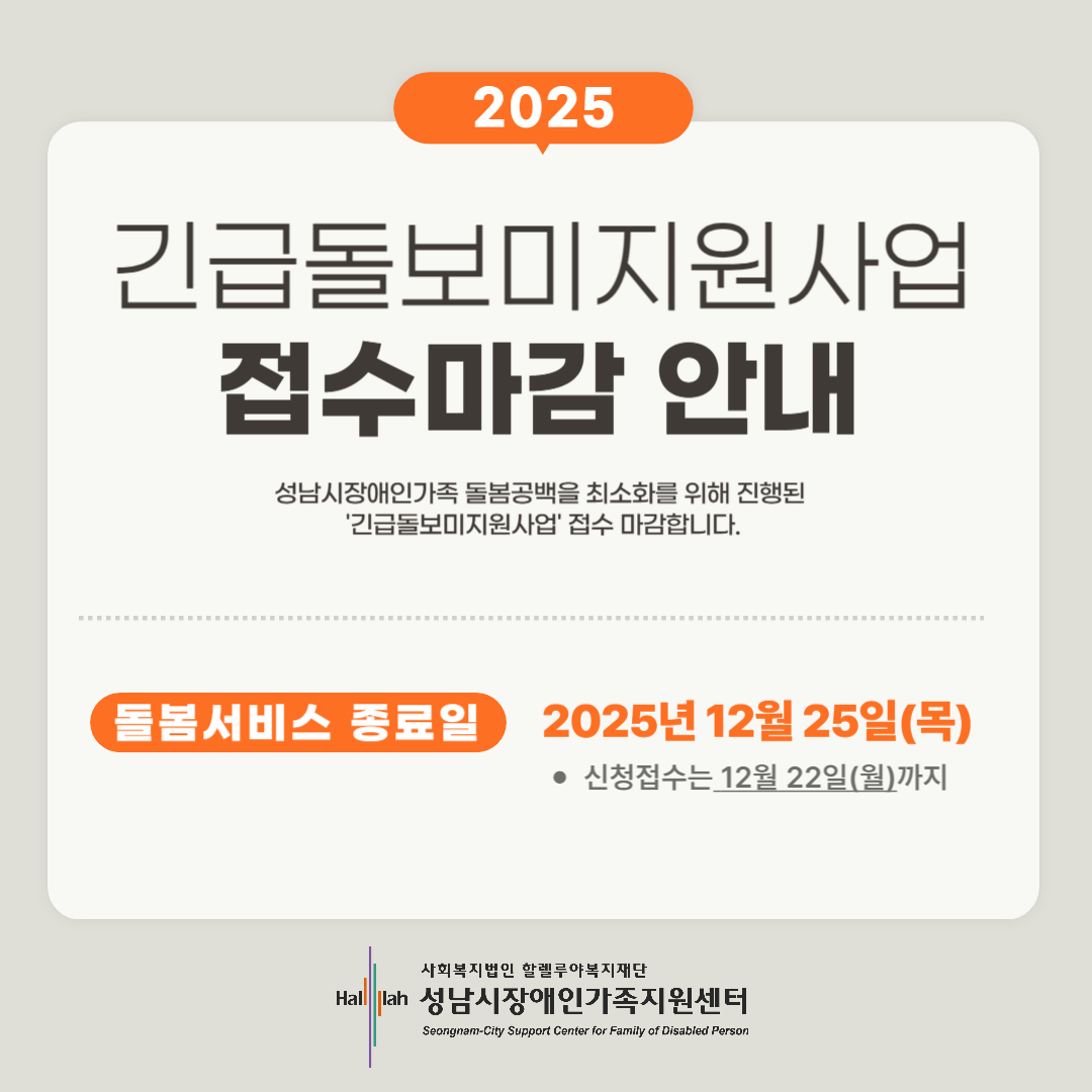 이번연도 긴급돌보미지원사업 서비스 종료일은 12월 25일(목) 이며,