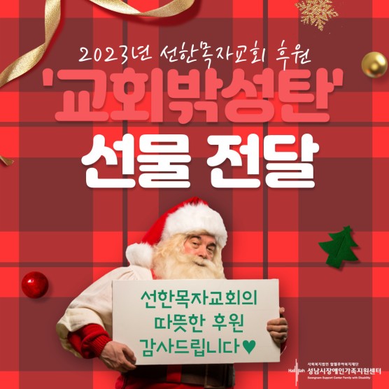 선한목자교회에서 성남시 장애인가족들을 위한 '교회 밖 성탄' 선물을 보내주셨습니다.